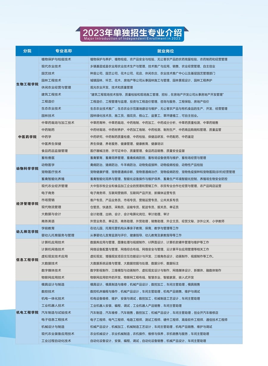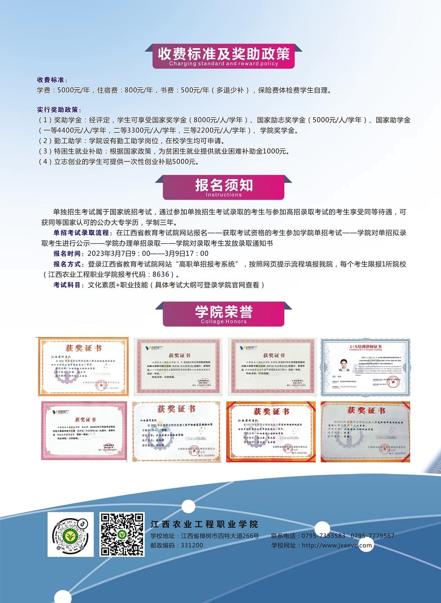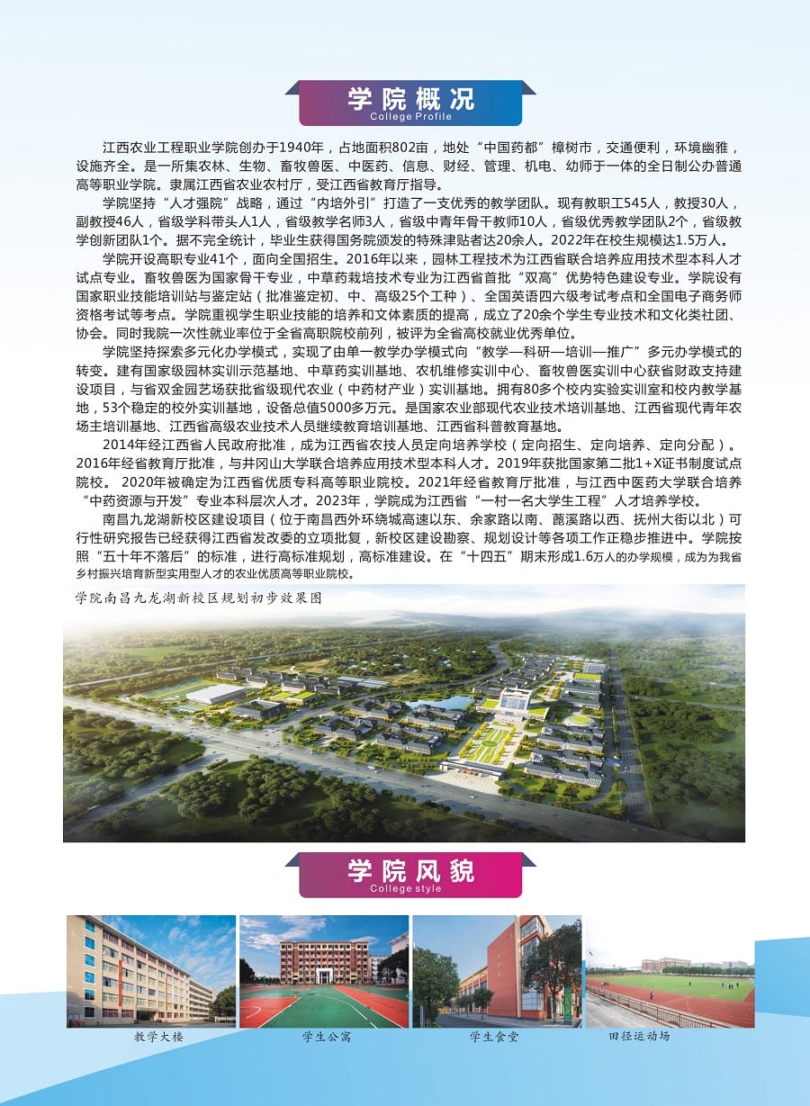 江西农业工程职业学院2023年单招招生简章